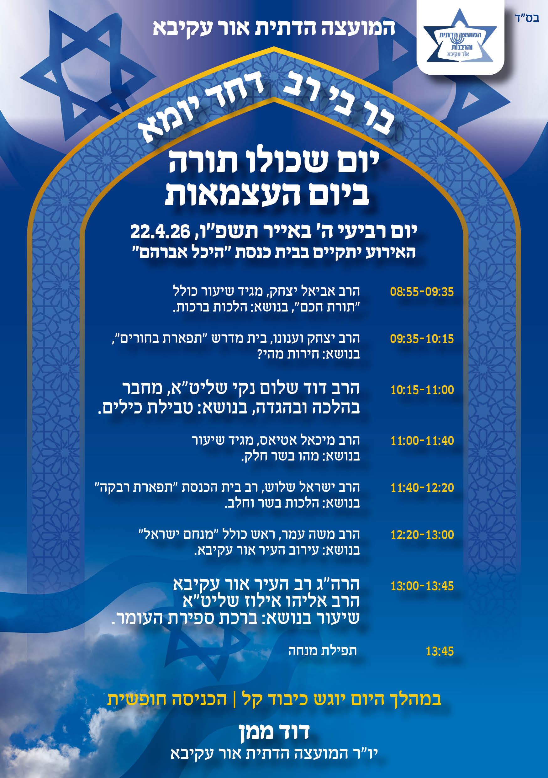באתר זה תוכלו למצוא מידע מקיף על שירותי המועצה, שעות פעילות, טפסים נדרשים, מידע תורני ועוד. אנו מזמינים אתכם לגלוש באתר, להתעדכן בפעילויות השונות, וכמובן – ליצור עמנו קשר בכל שאלה או בקשה.
